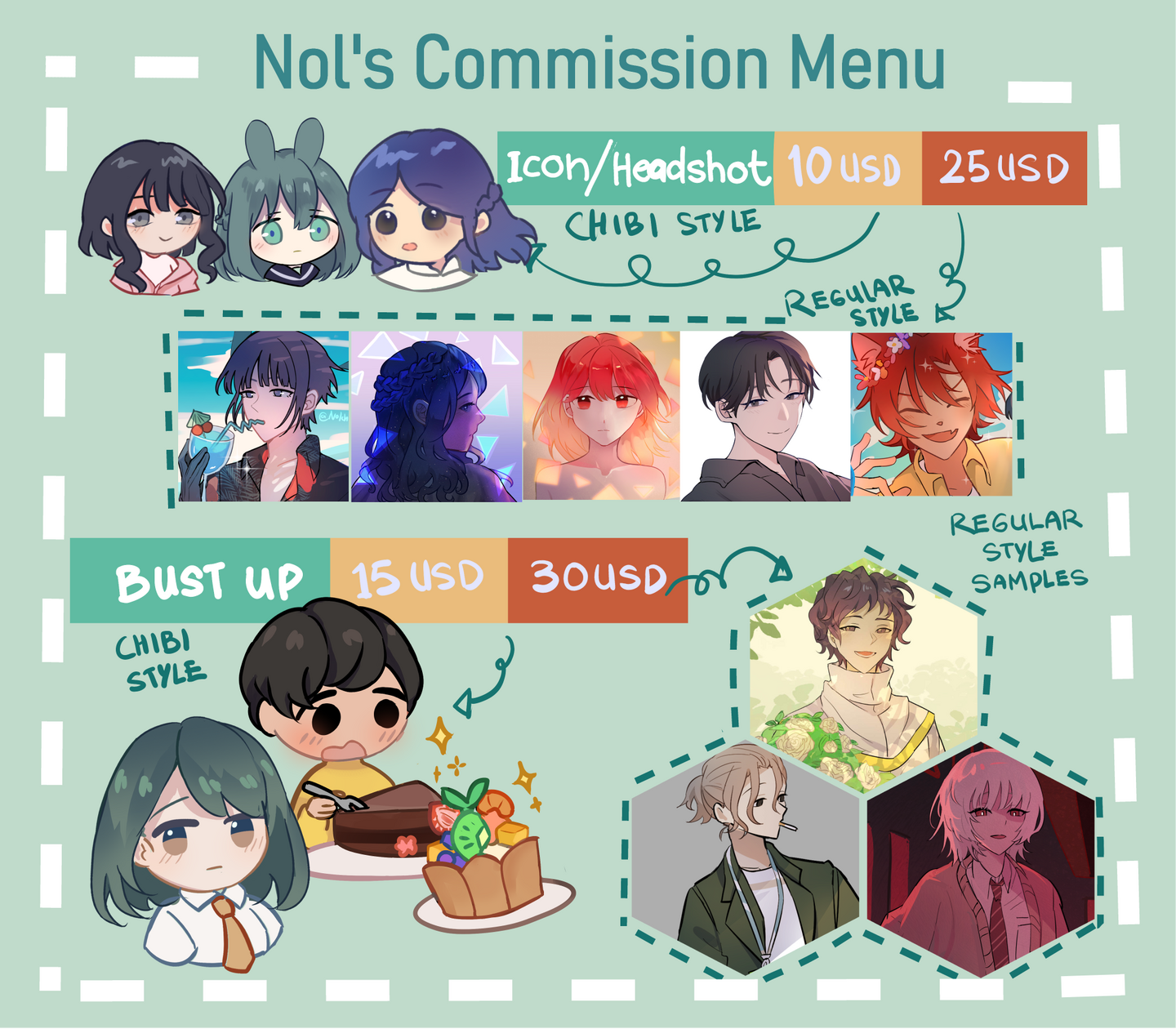 ✦ I'm also open to other types of commissions as long as it's within my expertise. If you have something in mind feel free to suggest it to me and I'll let you know if it's possible or not.V. Commission form