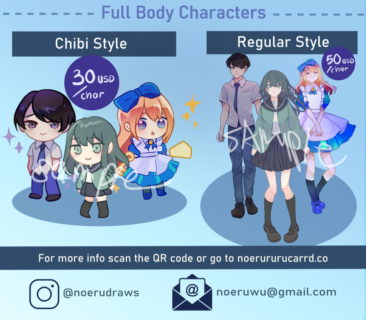 ✧ Full Body 50$✦ Prices above are the basic prices for each character. The sum will be adjusted according to the complexity.